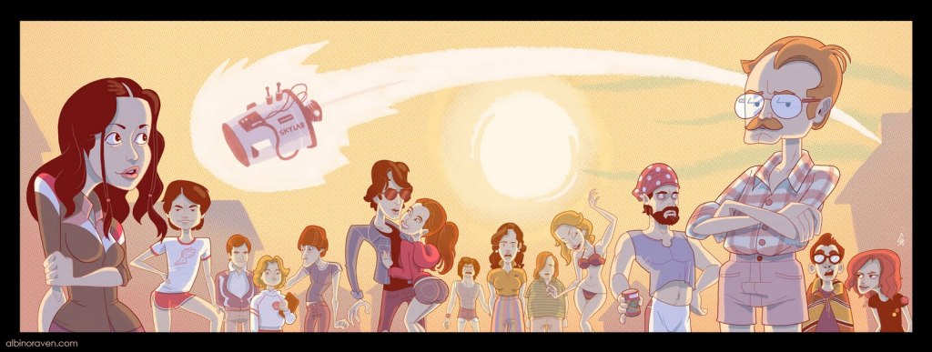So Netflix is slowly buying up real estate on the pop culture landscape. I for one welcome our new streaming overlords- and it wasn’t this year’s excellent made-for-Netflix Daredevil show that won me over. It was Wet Hot American Summer: First Day of Camp.